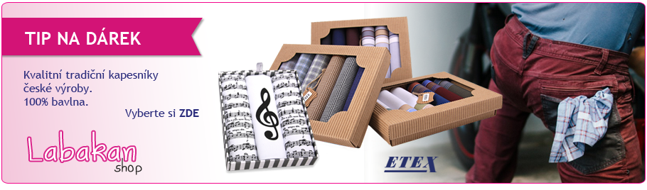 V našem e-shopu naleznete sortiment DĚTSKÉHO OBLEČENÍ všech věkových kategorií. Vše, co LABAKAN nabízí, osobně prověřujeme na vlastních potomcích. Sehnat v létě kvalitní a levné plavky, nebo v zimě dokonale padnoucí punčocháče, je s e-shopem LABAKAN radostí. Dále nabízíme dámské a pánské prádlo, ČESKÉ kapesníky a utěrky a kvalitní ČESKOU kosmetiku. Naším cílem je spokojený zákazník, který nakoupí z pohodlí domova kvalitní ČESKÉ výrobky.